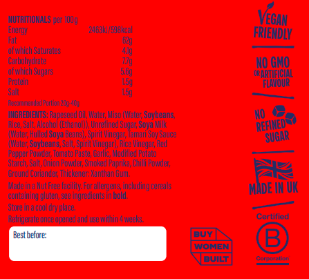 Made with naturally fermented miso, authentic Korean gochujang, and a touch of smoked paprika, this creamy mayo balances sweet heat with deep umami richness. Perfect for spreading on sandwiches, dipping crispy fries, or adding a bold finish to rice bowls and wraps.